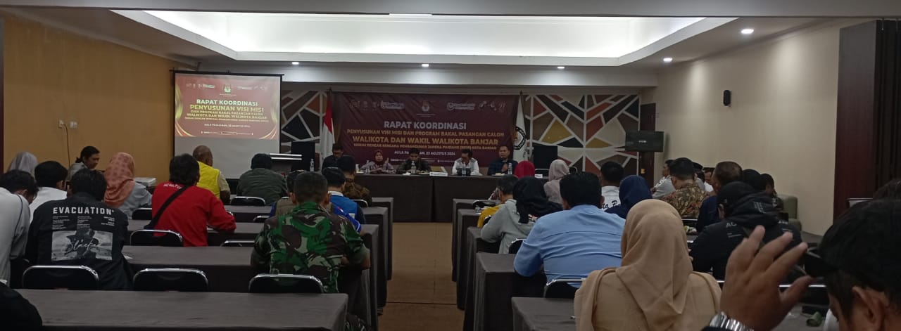 “Rakor hari ini kita laksanakan dalam rangka sosialisasi terkait penyusunan visi, misi dan program dari bakal pasangan calon Walikota dan wakil Walikota yang harus selaras dengan RPJP masing-masing wilayah atau daerah,” jelas M. Mukhlis selaku Ketua KPU Kota Banjar dalam sambutanya pada pembukaan kegiatan ini.