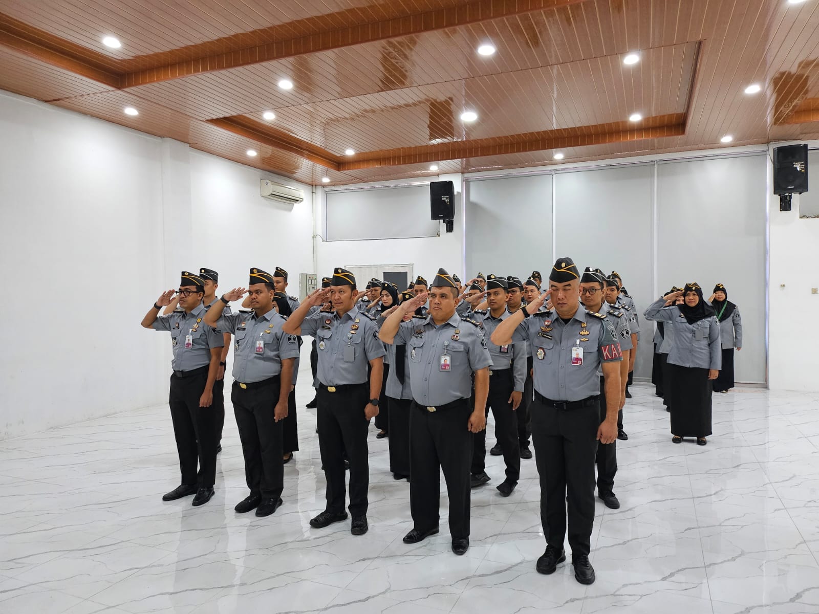Jakarta, Kicaunews.com – Jajaran Rumah Tahanan Negara (Rutan) Kelas I Cipinang mengikuti kegiatan Apel Pagi perdana bersama Menteri Hukum dan Hak Asasi Manusia (Menkumham) yang baru, Supratman Andi Agtas. Apel ini dilaksanakan secara hybrid yang terpusat di Lapangan Merah Kementerian Hukum dan HAM (Kemenkumham), Senin (26/08).