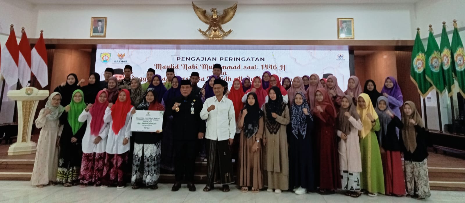 Kendal, Kicaunews.com – Suatu langkah yang sangat positive yang dilakukan oleh Pemerintah Kabupaten Kendal karena dimomen Peringatan Maulid Nabi Muhammad SAW pihaknya telah memberikan beasiswa kepada para Tahfidz Alquran yang ada di Kabupaten Kendal yang berjumlah 40 santri dan santriwati dengan nilai Rp 240 juta yang disalurkan oleh Baznas Kendal.