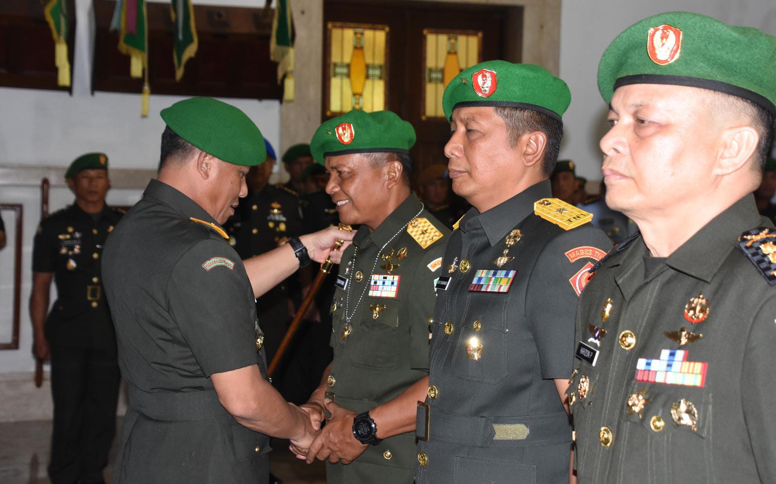 Sementara pejabat yang menyerahkan jabatan kepada Pangdam III/Slw adalah Kasansidam III/Slw Letkol Inf Harizoni Pulungan, S.E., dan Kasetumdam III/Slw Letkol Arh Kurniawan Fitriana, S.Sos. Selanjutnya Letkol Inf Harizoni Pulungan, S.E., menduduki jabatan baru sebagai Kasi Intel Kasrem 043/Gatam (Lampung) Kodam II/Swj sedangkan Letkol Arh Kurniawan Fitriana, S.Sos., menduduki jabatan baru sebagai Kasilog Kasrem 173/PVB (Biak) Kodam XVII/Cen.