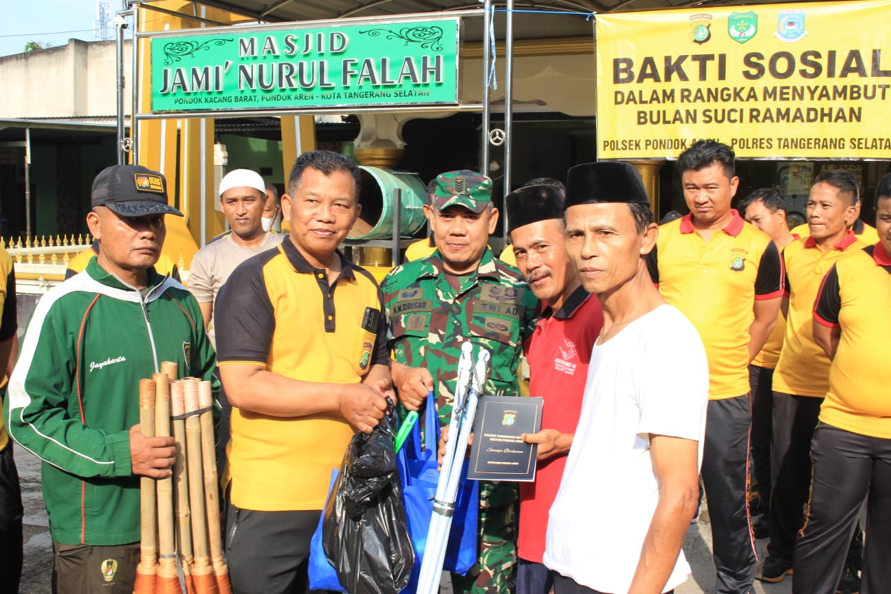 Tangerang Selatan, Kicaunews.com  – Polsek Pondok aren bersinergi dengan Koramil 07 melaksanakan Bakti Sosial Bersih-bersih Tempat Ibadah dalam rangka menyambut Bulan Suci Ramadhan 1446 H / 2025 M. Jumat, 28 Februari 2025.