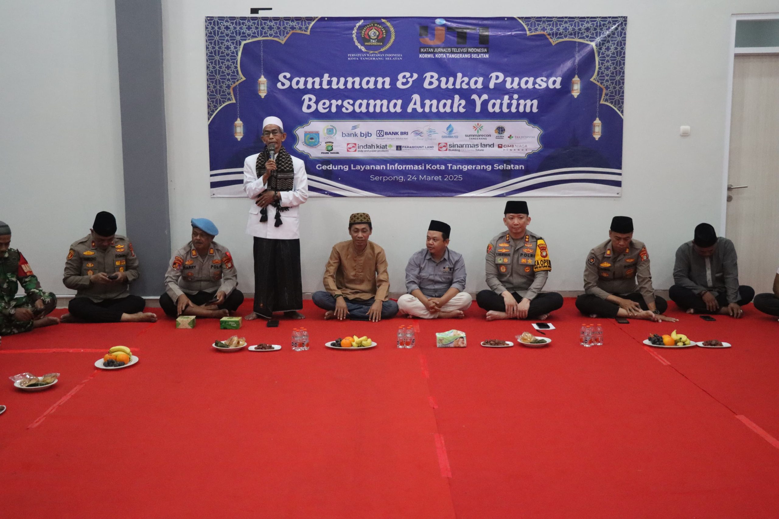 Tangsel, Kicaunews.com -Kapolres Tangerang Selatan, AKBP Victor D.H. Inkiriwang, S.H., S.I.K., M.Si, menghadiri acara buka puasa bersama dan memberikan santunan kepada anak yatim piatu bersama Persatuan Wartawan Indonesia (PWI) dan Ikatan Jurnalis Televisi Indonesia (IJTI) Kota Tangerang Selatan. Kegiatan ini berlangsung di Gedung Layanan Informasi Kota Tangerang Selatan, Jalan Al-Mustaqiem BSD No.84, Kelurahan Rawabuntu, Kecamatan Serpong, pada Senin, 24 Maret 2025.