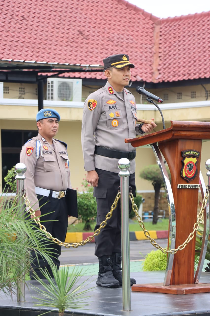 Upacara tersebut dipimpin langsung oleh Kapolres Indramayu, AKBP Ari Setyawan Wibowo, S.H., S.I.K., M.Si., dengan Perwira Upacara Kabag SDM Kompol Bekti Setiawan, S.I.P., M.Si., dan Komandan Upacara KBO Satlantas Polres Indramayu, Ipda Masnan, S.H.