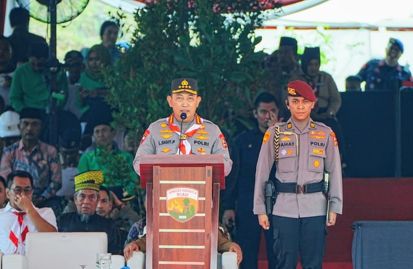 Riau, Kicaunews.com – Kapolri Jenderal Listyo Sigit Prabowo menjadi Inspektur upacara pembukaan Jambore Karhutla 2025 di Bumi Perkemahan Tahura Sultan Syarif Hasyim, Kabupaten Siak, Jumat (25/4/2025).