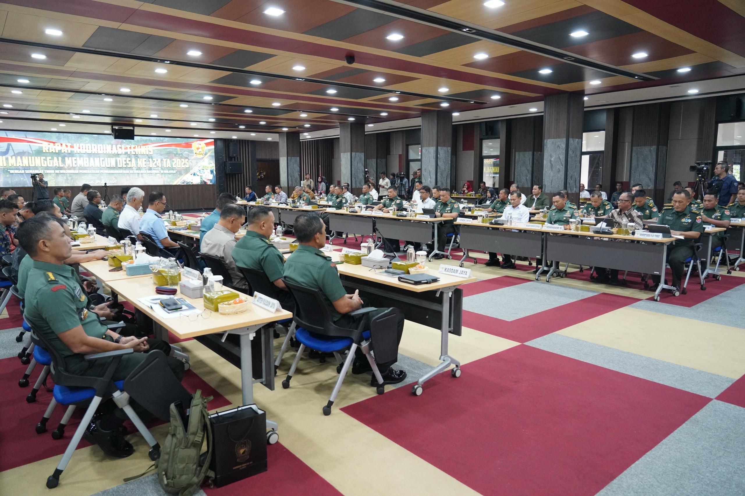 Hal tersebut disampaikan Asisten Teritorial (Aster) Kasad Mayjen TNI Joko Hadi Susilo, S.I.P., dalam sambutan tertulisnya yang dibacakan oleh Waaster Kasad Bidang Tahwil, Komsos, dan Bhakti TNI, Brigjen TNI Taufik Shobri, dalam Rakornis TMMD ke-124 Tahun 2025 dan evaluasi TMMD ke-123 Tahun 2025 yang digelar di Aula Jenderal Besar A.H. Nasution, Markas Besar Angkatan Darat (Mabesad), Jakarta, Kamis (24/4/2025).