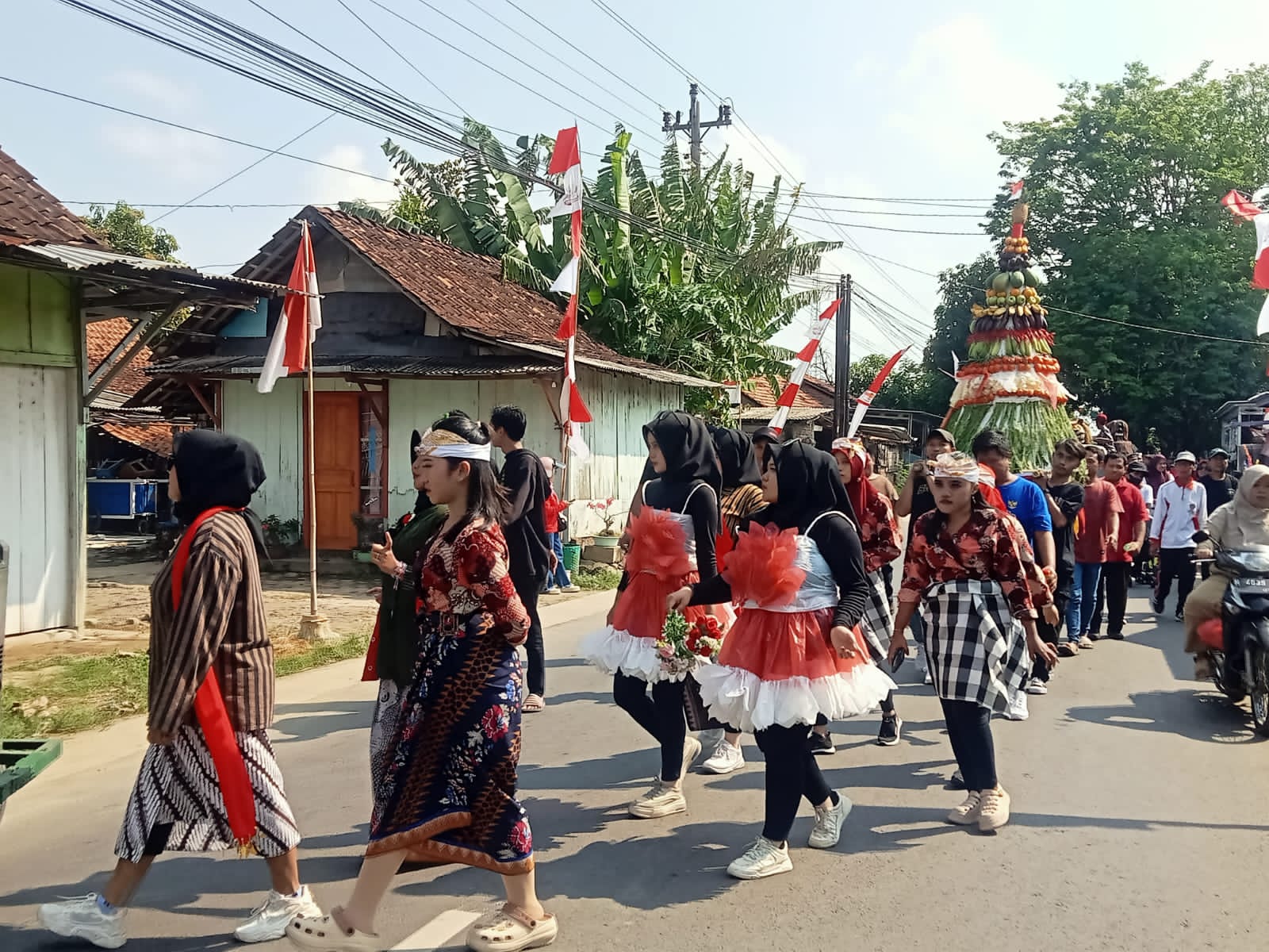 Kegiatan tersebut diikuti oleh seluruh masyarakat dengan menggunakan beberapa kostum dan kreativitas yang ditampilkan dari mulai kostum pakaian adat, gunungan makanan dan minuman serta marching band, dan kesenian singobarong.