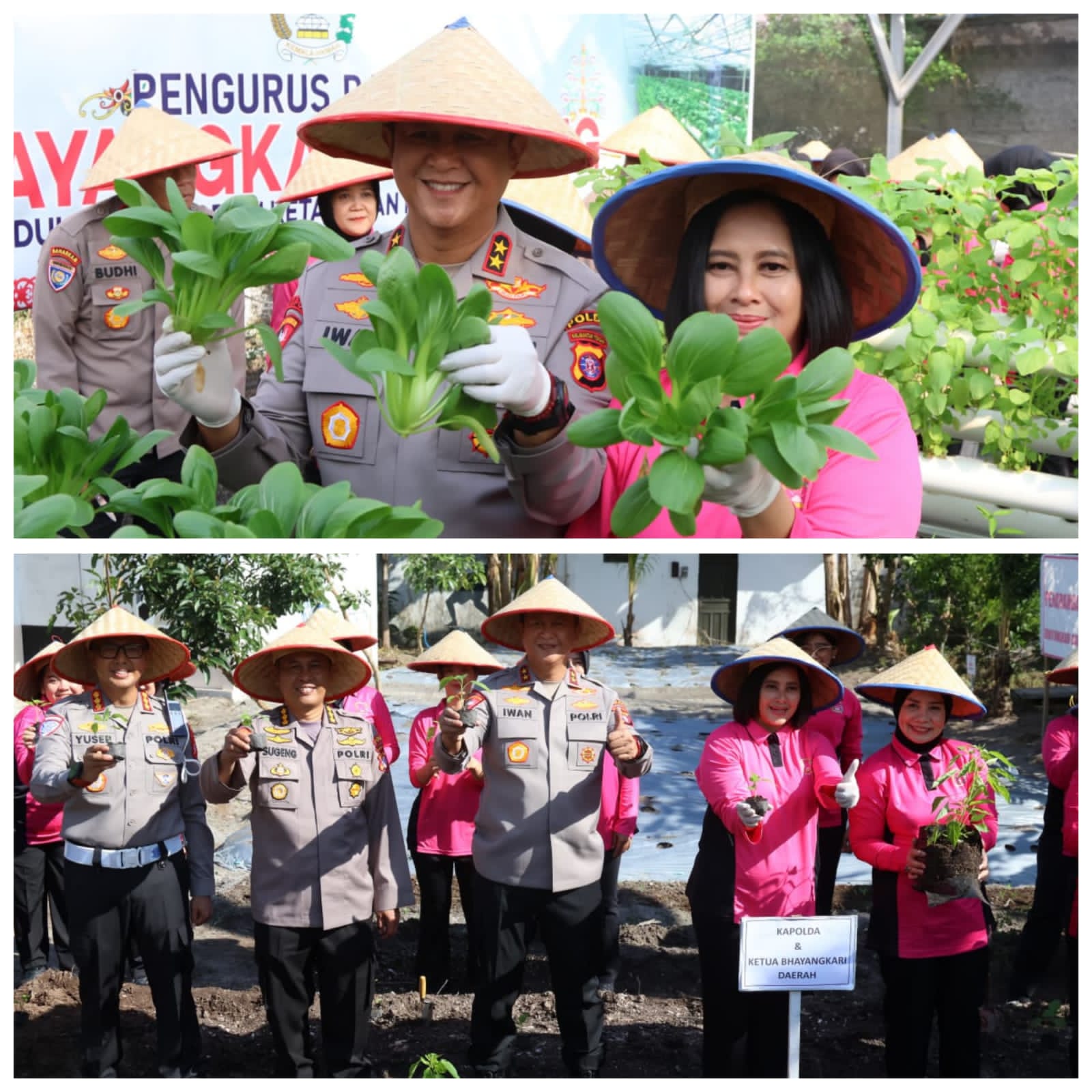 Kalimantan Tengah, Kicaunews.com – Kapolda Kalimantan Tengah Irjen Pol Iwan Kurniawan, S.I.K., M.Si. bersama Ketua Bhayangkari Kalteng Ny. Maya Iwan Kurniawan, melaksanakan kegiatan panen sayuran di lahan Pekarangan Pangan Lestari (P2L), Mapolda setempat, Selasa (26/8/2025).