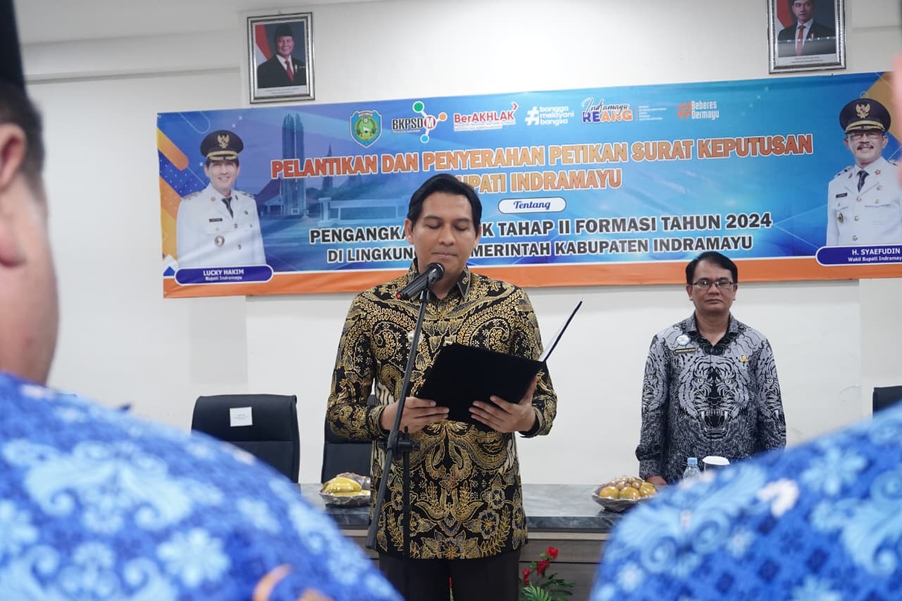 ‎Pelantikan dipimpin langsung oleh Bupati Lucky Hakim. Sebanyak 172 PPPK mengikuti prosesi pengambilan sumpah jabatan yang berlangsung khidmat dengan ikrar setia terhadap Undang-Undang Dasar 1945, menjunjung tinggi etika jabatan, menjaga integritas, serta menghindari penyalahgunaan kewenangan maupun perbuatan tercela.