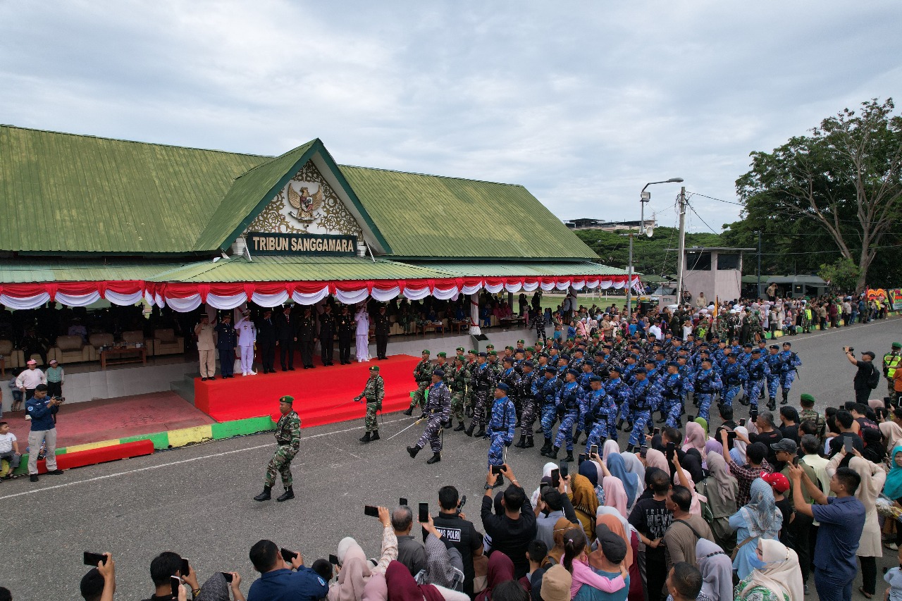 Kasdam Iskandar Muda, Brigjen TNI Yudha Fitri, bertindak sebagai Inspektur Upacara dan membacakan amanat Panglima TNI, Jenderal TNI Agus Subiyanto, S.E., M.Si. Dalam sambutannya, Panglima TNI menekankan bahwa peringatan HUT ke-80 TNI kali ini mengusung tema “TNI Prima – TNI Rakyat – Indonesia Maju.”