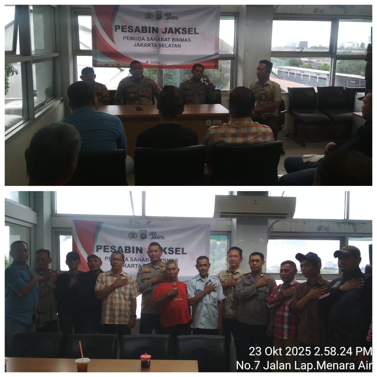Jakarta, Kicaunews.com – Guna mencegah Gangguan Keamanan dan Ketertiban Masyarakat ( Guantibmas ), aparat Kepolisian melakukan sejumlah langkah-langkah, salah satunya sosialisasi yang dilakukan Satuan Binmas Kepolisian Resor Metro Jakarta Selatan yang mensosialisasikan program Pemuda Sahabat Binmas ( Pesabin ) kepada masyarakat. Sosialisasi ini pertama kali dilakukan kepada Forum Kewaspadaan Dini Masyarakat ( FKDM ) dan Pokdarkamtibmas Bhayangkara se Kelurahan Manggarai, Kamis ( 23/10/2025 ) siang