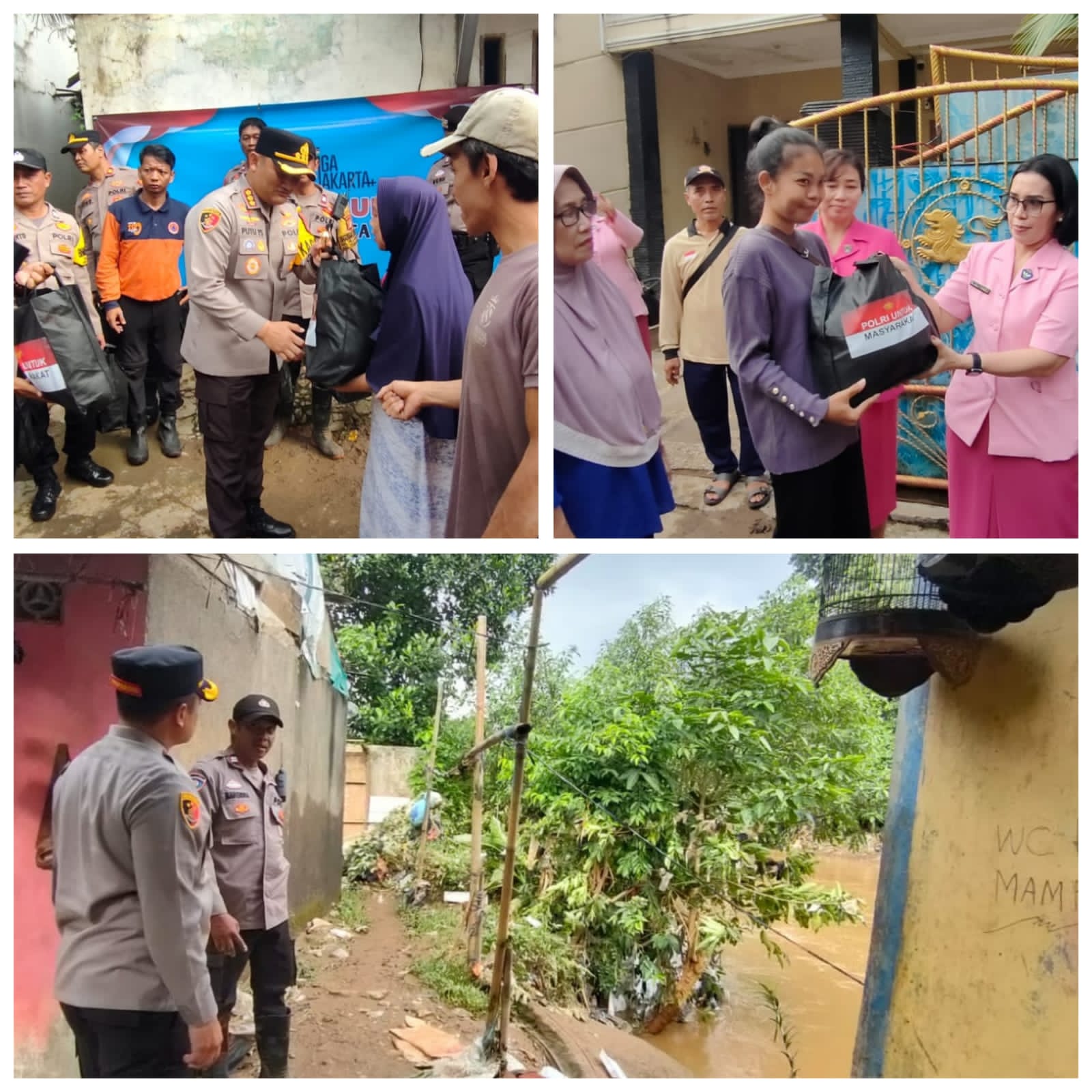 Kapolres Metro Jakarta Selatan dan Ketua Bhayangkari Cabang Jakarta Selatan yang memimpin langsung peninjauan dan pendistribusian bantuan langsung di lapangan, memastikan kebutuhan dasar warga terpenuhi serta pelayanan kepada masyarakat berjalan dengan baik selama masa tanggap darurat banjir.