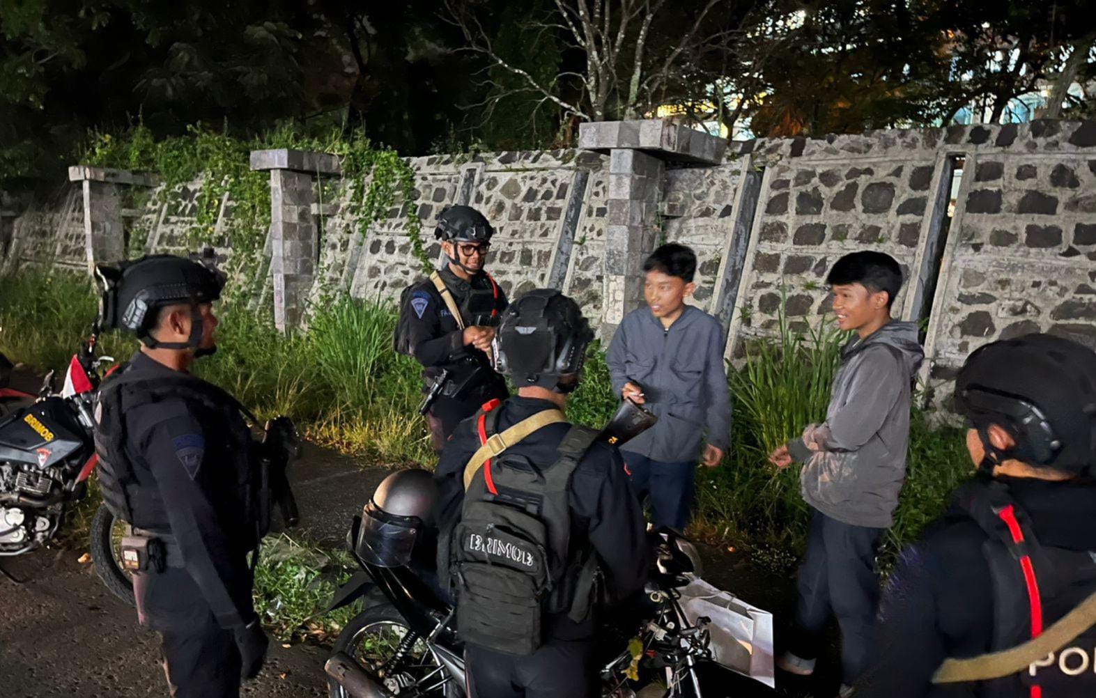 Pada pukul 20.15 WIB, tim patroli tiba di Pangkalan Damri dan memberikan imbauan kepada masyarakat agar senantiasa waspada serta menjaga keamanan lingkungan sekitar. Selanjutnya, pukul 21.20 WIB, patroli dilanjutkan ke kawasan PT. Kahatex. Di lokasi tersebut, personel Brimob berkoordinasi dengan petugas keamanan setempat untuk memastikan situasi Kamtibmas tetap aman dan kondusif.