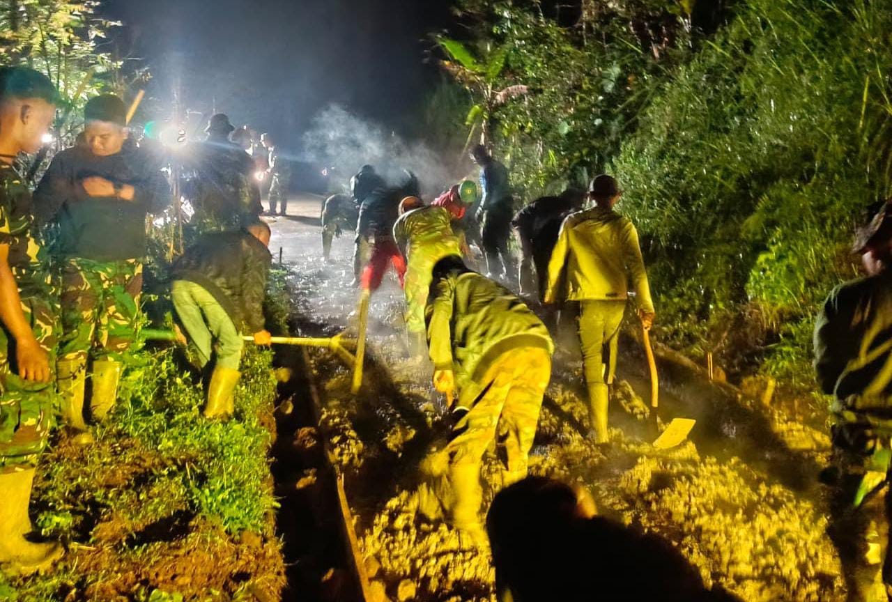 Bandung,kicaunews.com – Satgas TNI Manunggal Membangun Desa (TMMD) Reguler Ke-127 Kodim 0624/Kabupaten Bandung mempercepat pengerjaan pengecoran jalan di Desa Cipelah, Kecamatan Rancabali, dengan melanjutkan pekerjaan hingga malam hari guna mengejar target pembangunan sepanjang 1,5 kilometer.