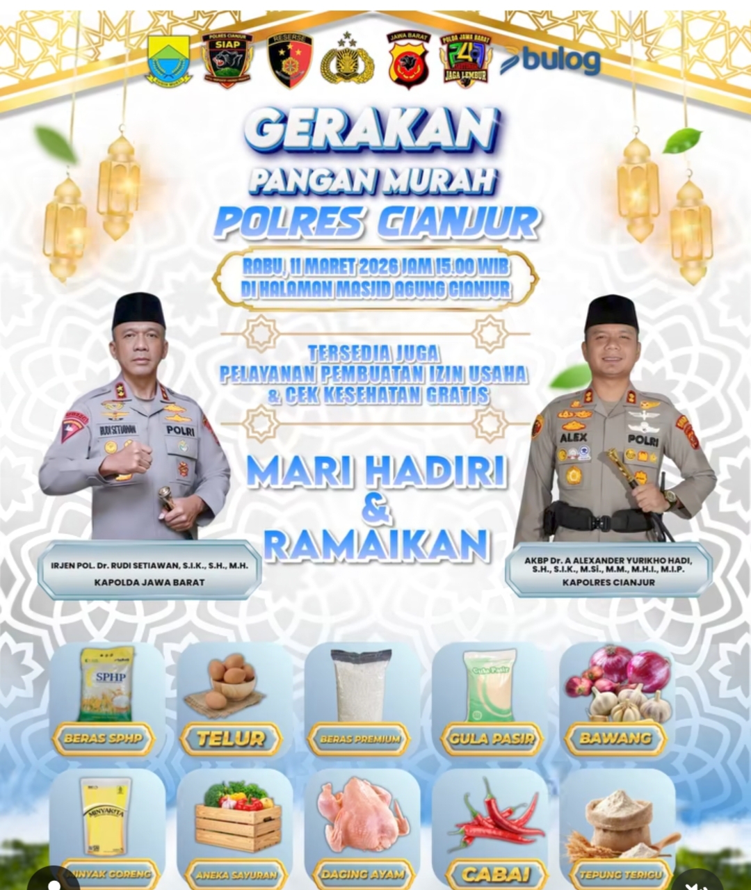 Cianjur, Kicaunews.com – Polres Cianjur hadir untuk membantu masyarakat mendapatkan bahan pokok dengan harga terjangkau. Tidak hanya belanja, Anda juga bisa memanfaatkan layanan kesehatan dan pengurusan izin usaha secara gratis!