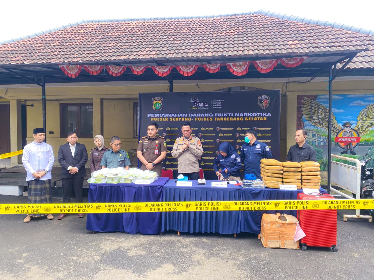 Pemusnahan dipimpin langsung Kapolsek Serpong Kompol Suhardono, S.H., M.M., dan dihadiri perwakilan Pengadilan Negeri Tangerang, Kejaksaan Negeri Tangerang Selatan, Kejaksaan Negeri Kabupaten Tangerang, tokoh agama, tersangka serta penasihat hukum. Kehadiran para pihak tersebut menjadi wujud transparansi dan akuntabilitas dalam proses penegakan hukum.