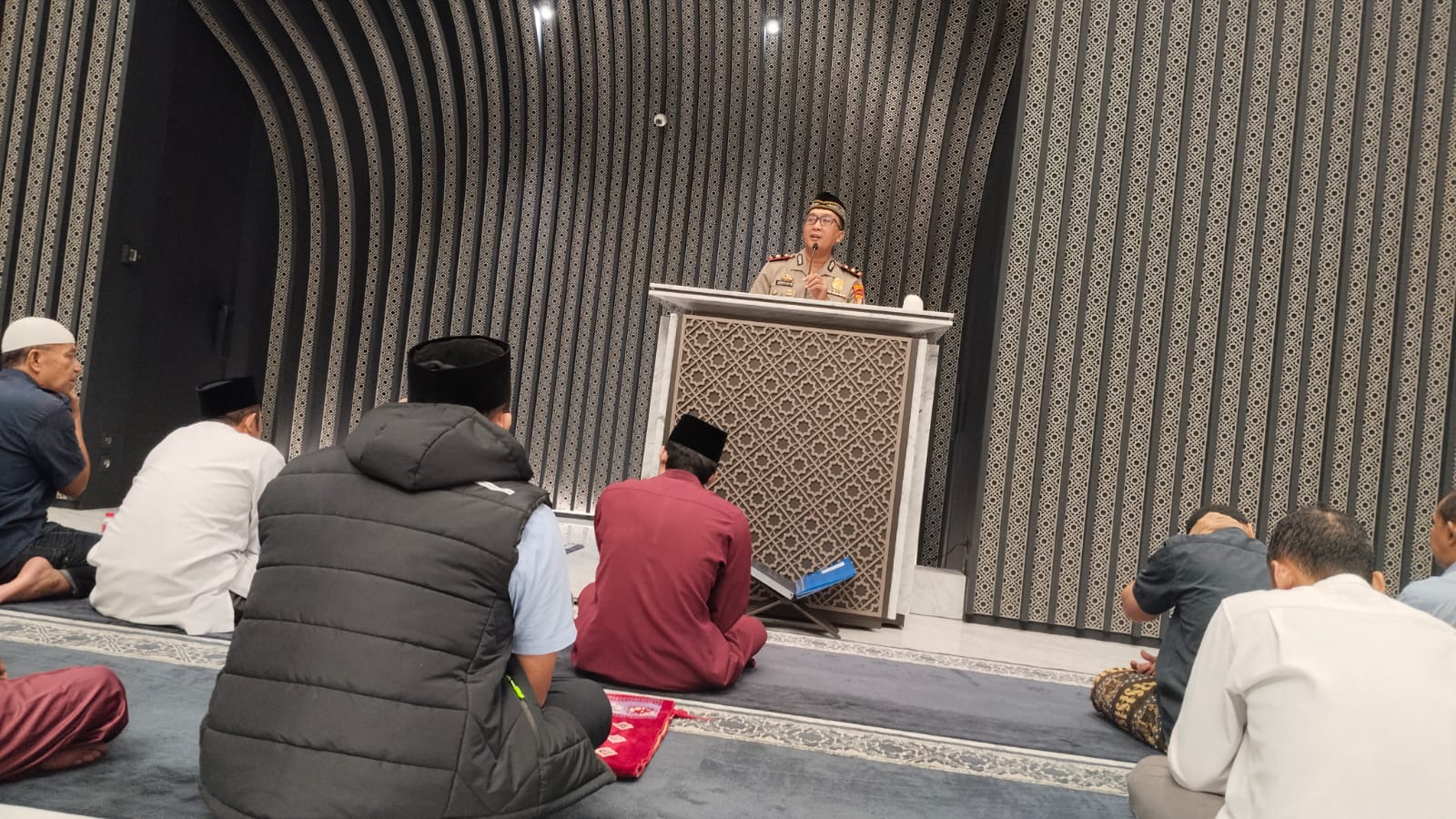 Dalam kesempatan tersebut, Kapolsek Ciputat Timur menyampaikan kultum Ramadhan dengan tema “Iman Terjaga, Kamtibmas Terpelihara.” Ia mengawali dengan mengajak seluruh jamaah untuk senantiasa bersyukur atas nikmat dan karunia Allah SWT serta memanfaatkan bulan suci Ramadhan sebagai momentum meningkatkan kualitas ibadah.