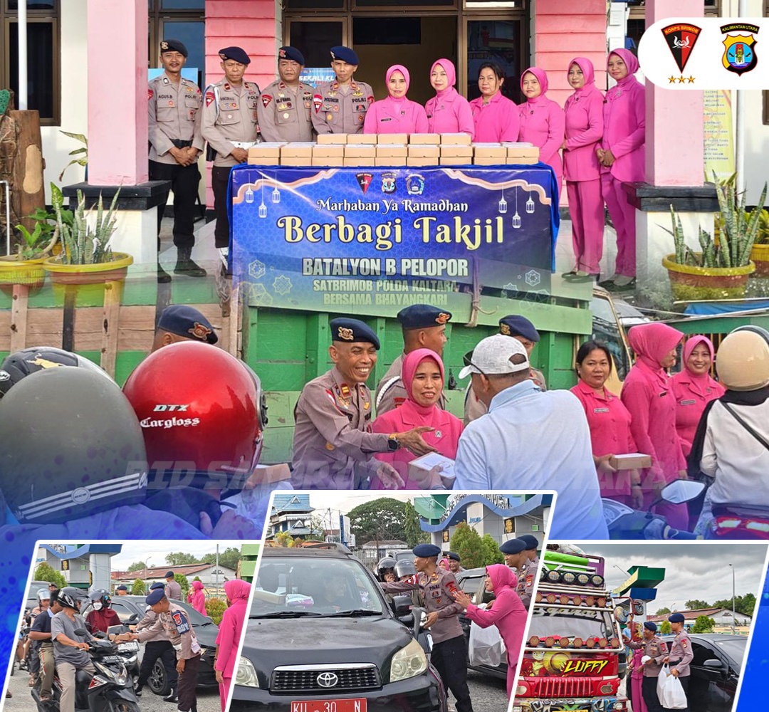 Nunukan, Kicaunews.com– Dalam rangka menyemarakkan bulan suci Ramadhan dengan kegiatan positif, personel Batalyon B Pelopor Satuan Brimob Polda Kalimantan Utara bersama Bhayangkari melaksanakan kegiatan berbagi takjil kepada masyarakat pada Selasa, 11 Maret 2026. Kegiatan tersebut dilaksanakan di kawasan Pelabuhan Tunon Taka, Kabupaten Nunukan, dengan menyasar para pengguna jalan, buruh pelabuhan, pengemudi ojek, serta masyarakat yang melintas menjelang waktu berbuka puasa.