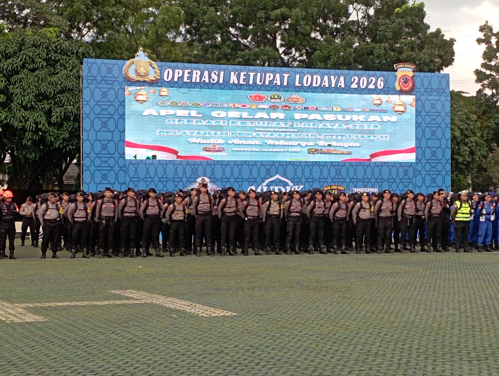 Bandung,kicaunews.com – Apel Gelar Pasukan Operasi Ketupat Lodaya 2026 digelar di Bandung, Jawa Barat, Kamis (12/3), sebagai bentuk kesiapan pengamanan arus mudik dan arus balik Lebaran 2026 atau Idul Fitri 1447 Hijriah.