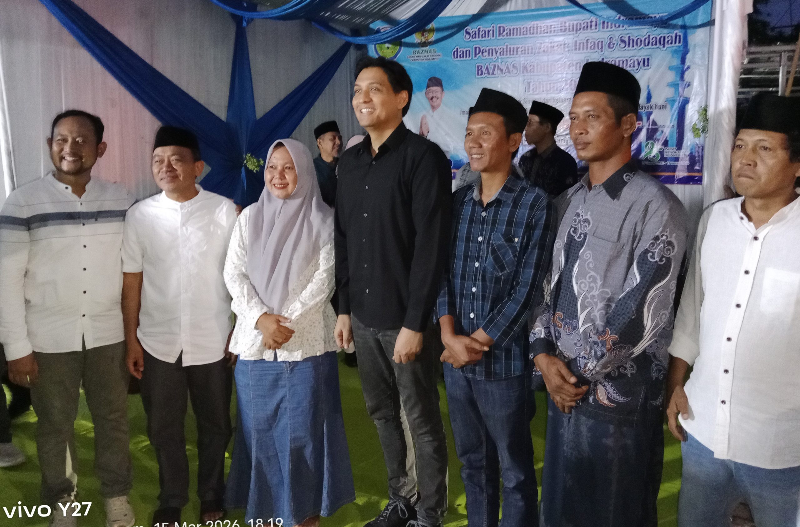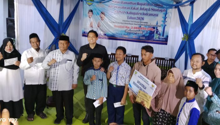 Indramayu,Kicaunews.com- Bupati Indramayu Lucky Hakim bersama Badan Amil Zakat Nasional Kabupaten Indramayu menyalurkan secara simbolis dana zakat, infak, dan sedekah (ZIS) kepada warga yang kurang mampu. Acara ini dilakukan di sela-sela kegiatan Safari Ramadan di Kecamatan Terisi Minggu (15/03/2026).