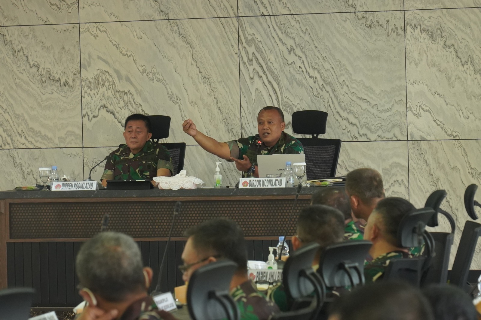 Rapat dipimpin Direktur Perencanaan (Dirren) Kodiklatad Brigjen TNI Dr. Saripudin, S.Sos., M.Si., mewakili Komandan Kodiklatad Letjen TNI Mohamad Hasan.