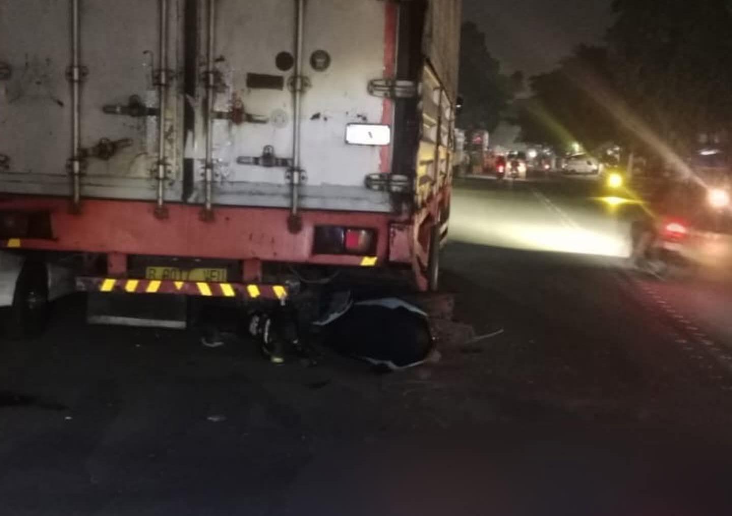 Peristiwa tersebut melibatkan satu unit truk Hino tronton box yang tengah berhenti dan satu unit sepeda motor Yamaha N-Max yang melaju dari arah barat.