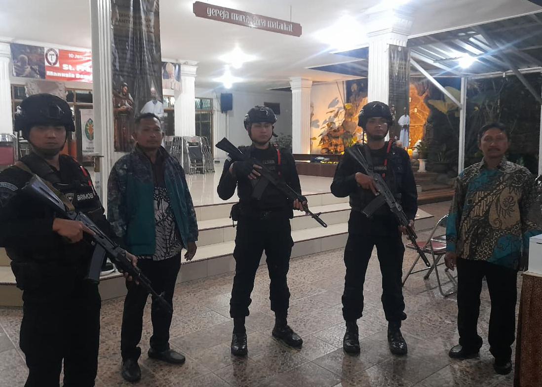 Selanjutnya, pada pukul 19.08 WIB, tim bergerak menuju Gereja Paroki Santa Maria Para Malaikat. Kehadiran personel Brimob di lokasi tersebut bertujuan memberikan rasa aman kepada masyarakat yang sedang menjalankan ibadah.