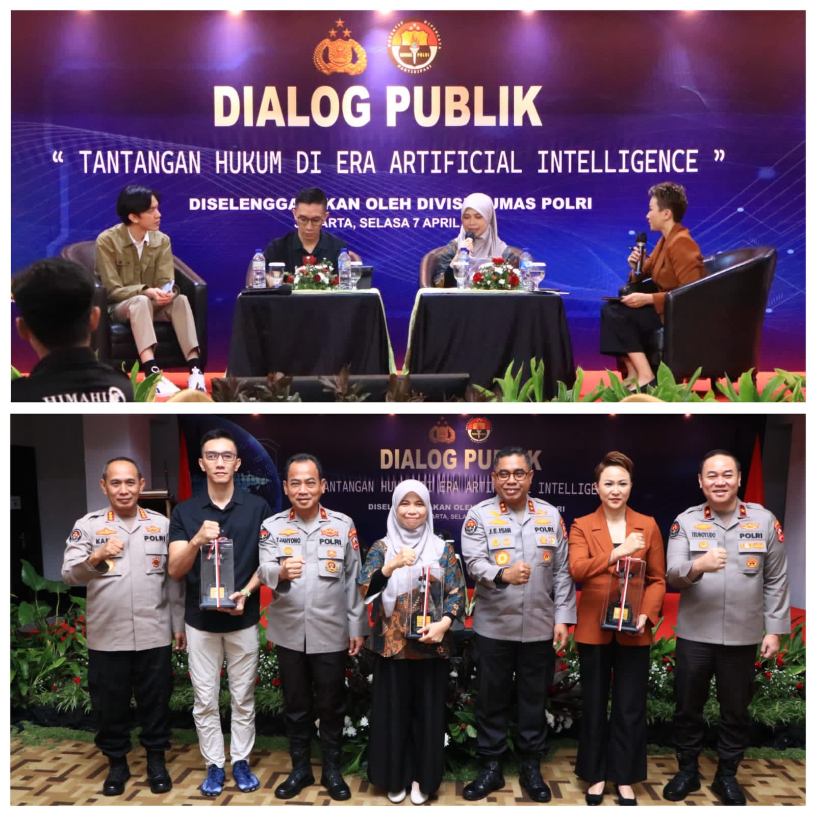 Jakarta, Kicaunews.com – Divisi Humas Polri menggelar dialog publik bertajuk penguatan internal Polri yang membahas tantangan hukum di era kecerdasan artifisial (artificial intelligence/AI) pada Selasa, 7 April 2026, di Hotel Grand Kemang, Jakarta Selatan. Kegiatan ini menjadi bagian dari upaya memperkuat kolaborasi lintas sektor dalam menghadapi dinamika perkembangan teknologi digital.