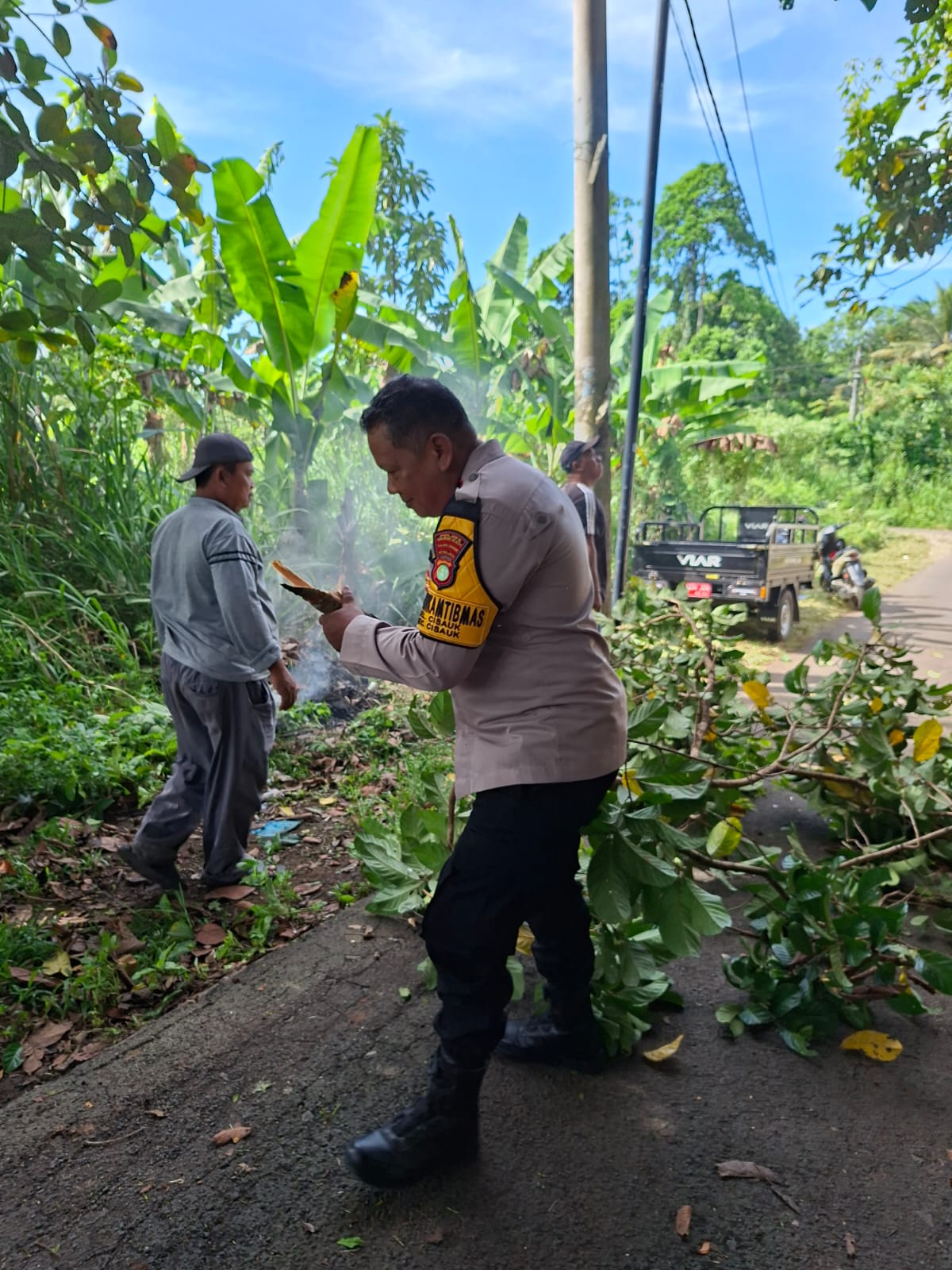Dalam kegiatan tersebut, Bhabinkamtibmas Kelurahan Cisauk AIPTU Sakbani bersama Ketua RW, Ketua RT, staf kelurahan, serta warga setempat melaksanakan kerja bakti atau gotong royong. Kegiatan ini menjadi wujud sinergitas antara Polri dan masyarakat dalam menjaga kebersihan serta keselamatan lingkungan.