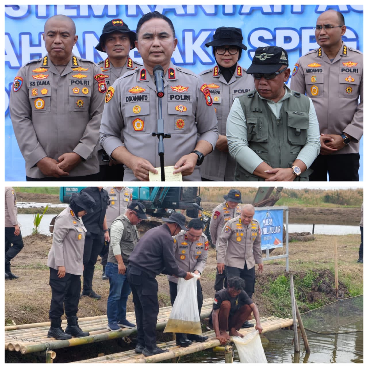 Bekasi, Kicaunews.com – Wakapolda Metro Jaya Brigjen Pol. Dekananto Eko Purwono meninjau sekaligus memimpin penebaran benih ikan tahap kedua di tambak Muara Gembong, Kabupaten Bekasi, Sabtu (18/4/2026). Kegiatan ini merupakan bagian dari penguatan rantai pasok bahan baku SPPG Polda Metro Jaya.