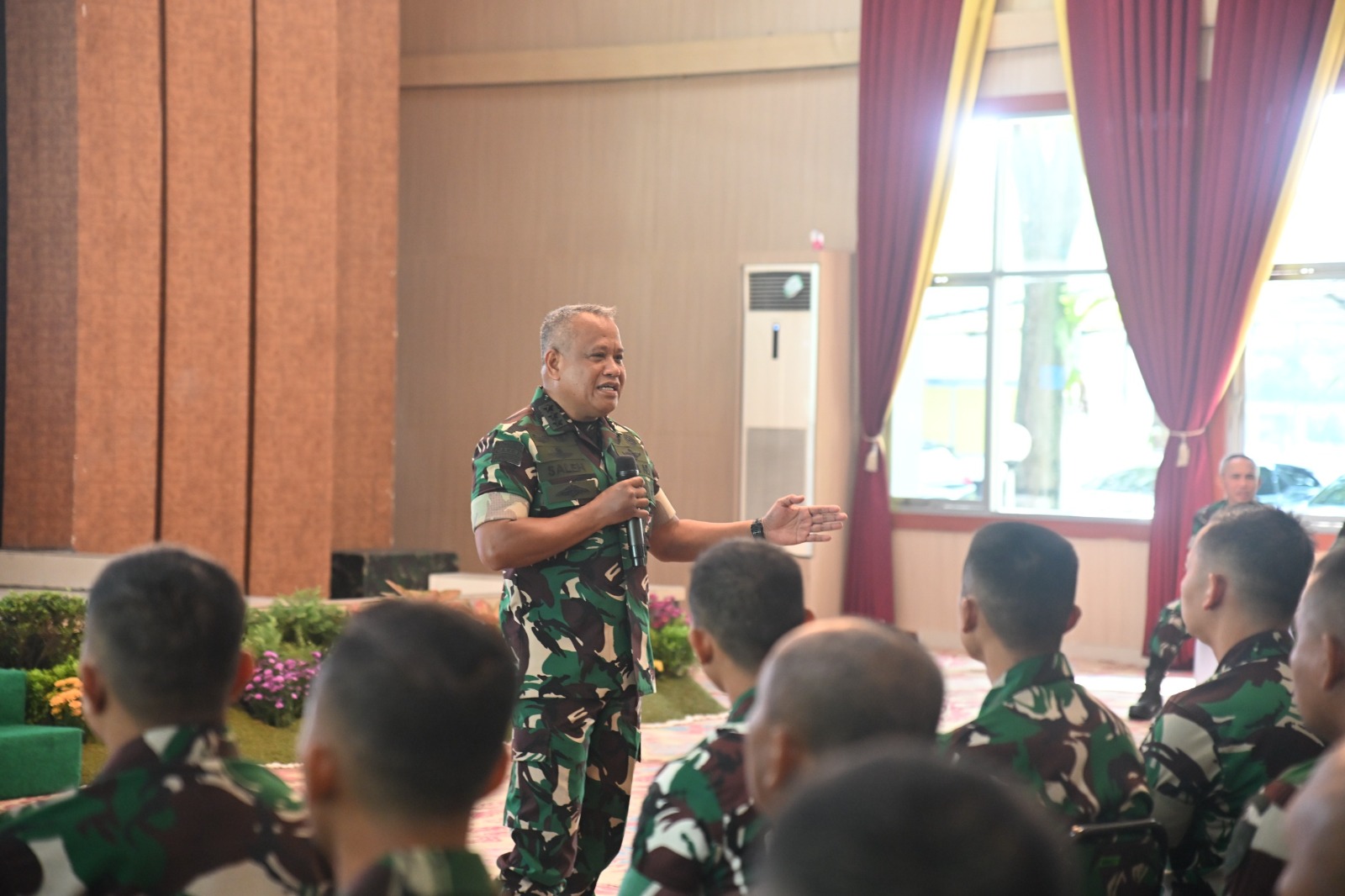 Ia menekankan pentingnya kepemimpinan yang dekat dan memberi teladan, peran komandan sebagai figur “Bapak”, serta penguatan budaya latihan. Hal tersebut didukung dengan komitmen nyata melalui pembangunan satuan dan evaluasi kemampuan prajurit guna meningkatkan profesionalisme ke depan.
