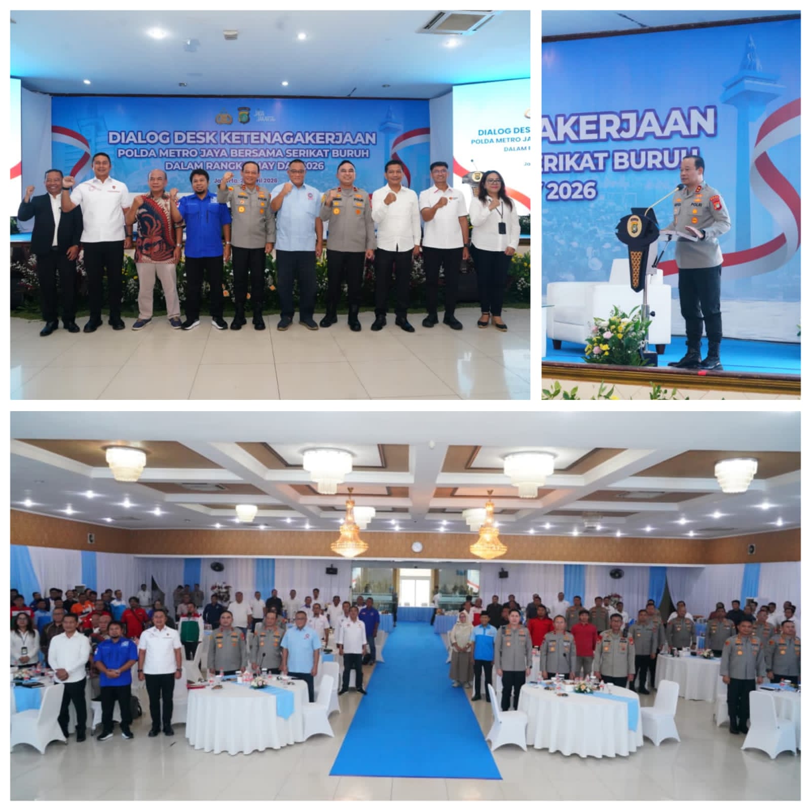 Jakarta, Kicaunews.com – Ditreskrimsus Polda Metro Jaya menggelar kegiatan Dialog Desk Ketenagakerjaan bersama serikat buruh dalam rangka menyambut May Day 2026. Kegiatan tersebut berlangsung di Gedung BPMJ, Rabu (22/4/2026).