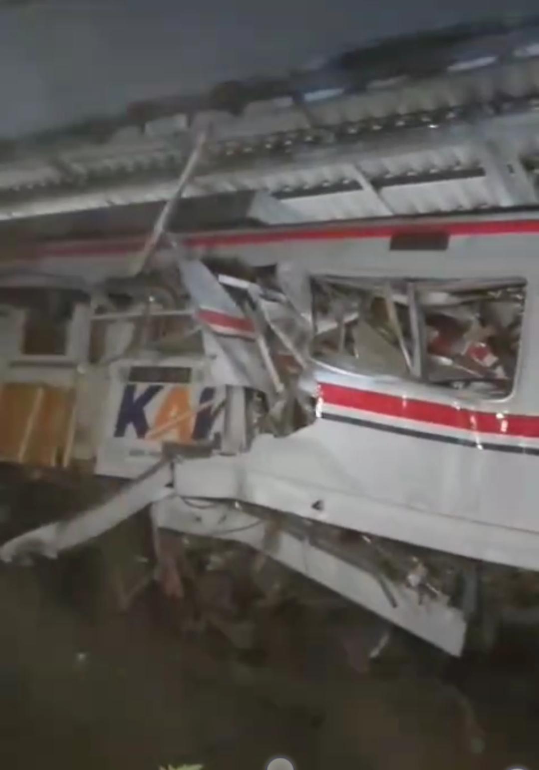 Sejumlah korban dilaporkan berjatuhan akibat benturan keras kedua kereta. Petugas gabungan dari TNI, Polri, Basarnas, dan tim medis masih melakukan evakuasi di lokasi kejadian. Korban luka-luka langsung dilarikan ke rumah sakit terdekat untuk mendapat penanganan medis. Hingga kini belum ada keterangan resmi terkait jumlah korban.